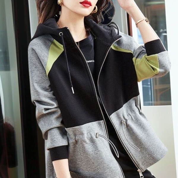 今年人気のレディースジャケット春秋新色マッチング怠惰なフード付きジッパー韓国風ウエスト緩いスウェットシャツ