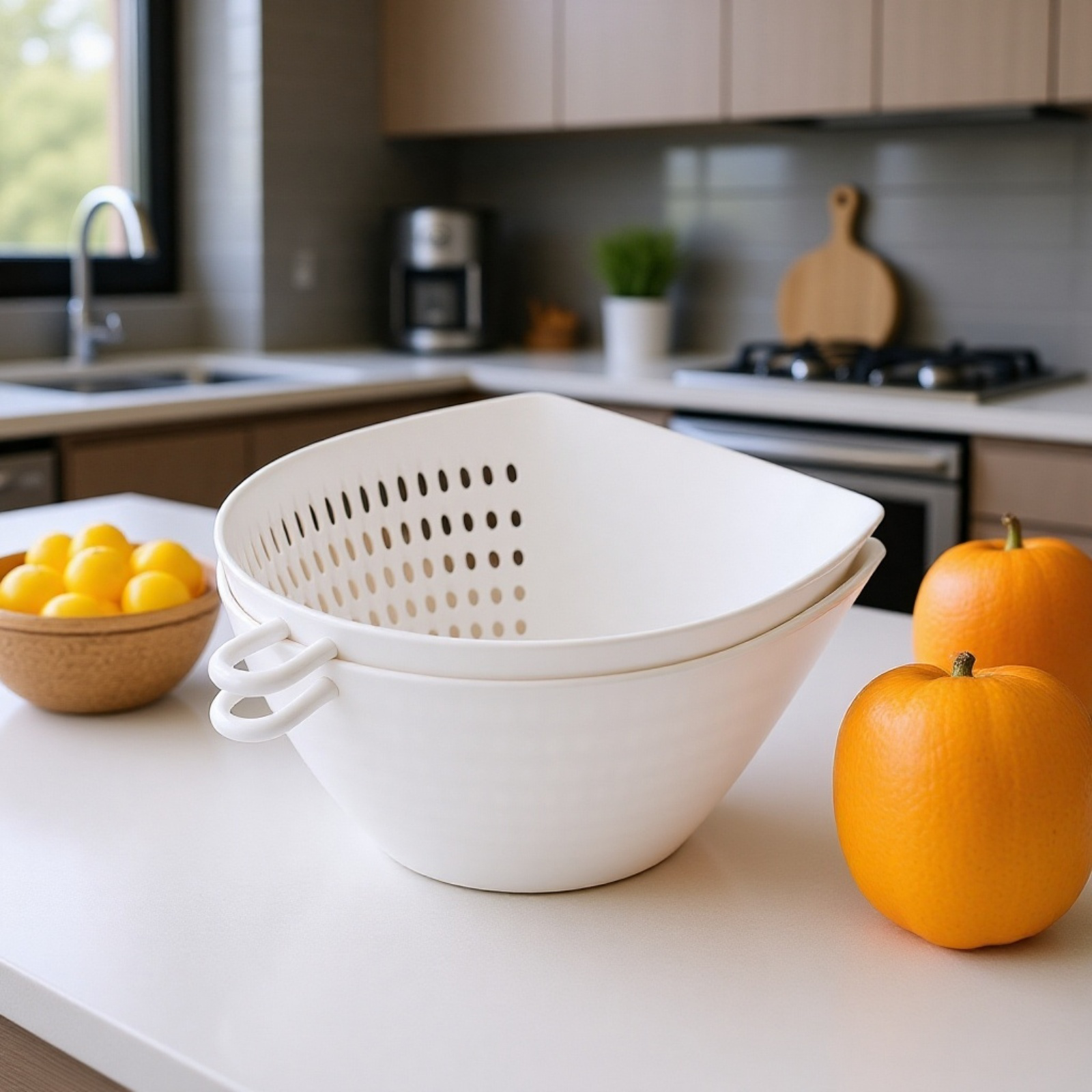 キッチンでの野菜や果物洗いがもっと便利に!二層構造でしっかり水切り、毎日の家事が快適になります。