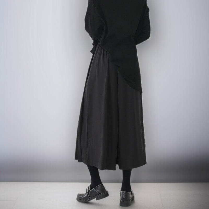 ● 七分丈仕様で足元をすっきり見せ、パンツとしてもスカート風にも着こなせる2WAYデザインが魅力です。