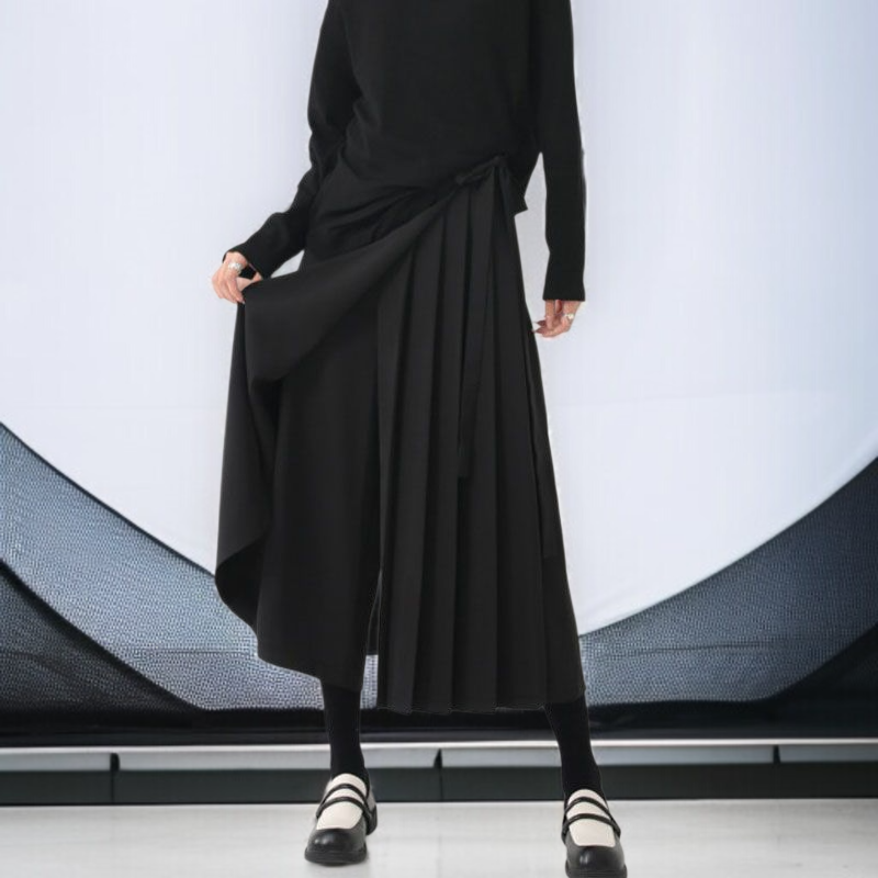 レディースサマーカジュアルパンツドレープワイドレッグパンツ女性イレギュラーセブンパンツパンツスカート